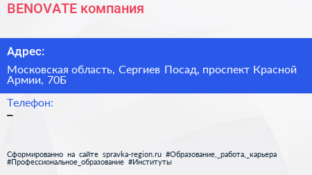 BENOVATE, компания по адресу Московская область, Сергиев Посад, проспект Красной Армии, 70Б в дальнейшем Организация, размещена в следующих категориях:
