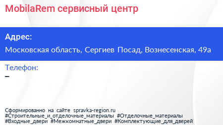 MobilaRem, сервисный центр по адресу Московская область, Сергиев Посад, Вознесенская, 49а в дальнейшем Организация, размещена в следующих категориях: