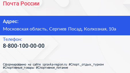Почта России по адресу Московская область, Сергиев Посад, Колхозная, 10а в дальнейшем Организация, размещена в следующих категориях: