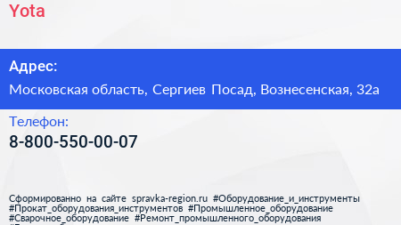 Yota по адресу Московская область, Сергиев Посад, Вознесенская, 32а в дальнейшем Организация, размещена в следующих категориях: