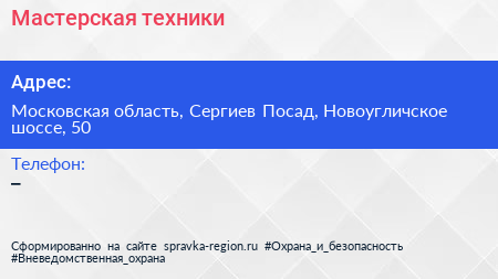 Мастерская техники по адресу Московская область, Сергиев Посад, Новоугличское шоссе, 50 в дальнейшем Организация, размещена в следующих категориях: