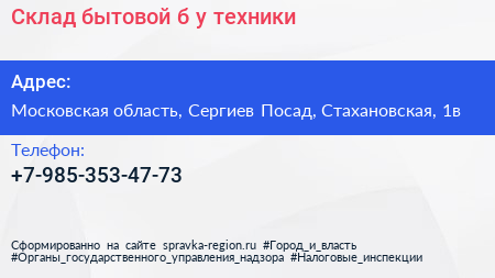 Склад бытовой б/у техники по адресу Московская область, Сергиев Посад, Стахановская, 1в в дальнейшем Организация, размещена в следующих категориях: