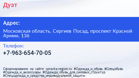 Дуэт по адресу Московская область, Сергиев Посад, проспект Красной Армии, 136 в дальнейшем Организация, размещена в следующих категориях:
