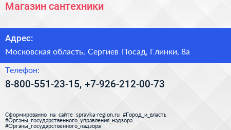 Магазин сантехники по адресу Московская область, Сергиев Посад, Глинки, 8а в дальнейшем Организация, размещена в следующих категориях: