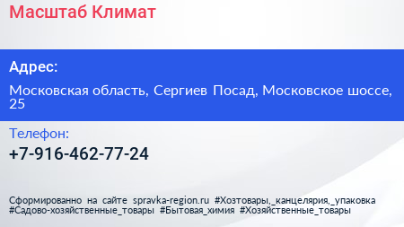 Масштаб-Климат по адресу Московская область, Сергиев Посад, Московское шоссе, 25 в дальнейшем Организация, размещена в следующих категориях: