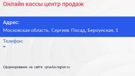 Онлайн-кассы, центр продаж по адресу Московская область, Сергиев Посад, Бероунская, 1 в дальнейшем Организация, размещена в следующих категориях: