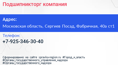 Подшипникторг, компания по адресу Московская область, Сергиев Посад, Фабричная, 40а ст1 в дальнейшем Организация, размещена в следующих категориях:
