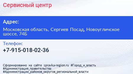 Сервисный центр по адресу Московская область, Сергиев Посад, Новоугличское шоссе, 74Б в дальнейшем Организация, размещена в следующих категориях: