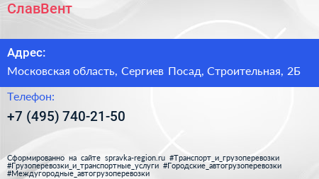 СлавВент по адресу Московская область, Сергиев Посад, Строительная, 2Б в дальнейшем Организация, размещена в следующих категориях: