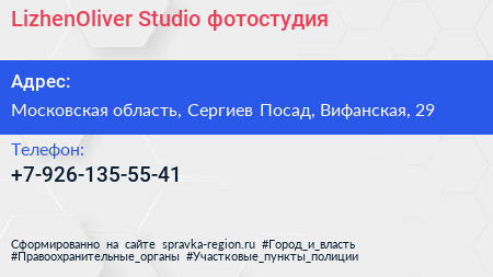 LizhenOliver Studio, фотостудия по адресу Московская область, Сергиев Посад, Вифанская, 29 в дальнейшем Организация, размещена в следующих категориях: