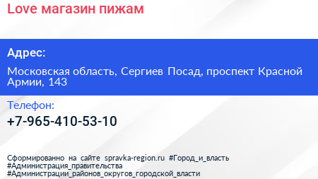 Love, магазин пижам по адресу Московская область, Сергиев Посад, проспект Красной Армии, 143 в дальнейшем Организация, размещена в следующих категориях: