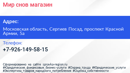 Мир снов, магазин по адресу Московская область, Сергиев Посад, проспект Красной Армии, 5а в дальнейшем Организация, размещена в следующих категориях: