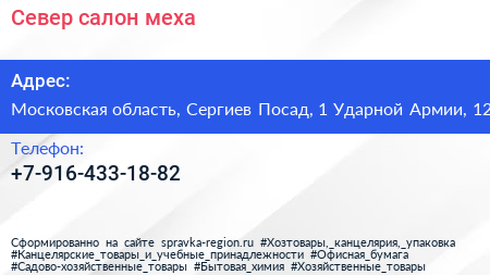 Север, салон меха по адресу Московская область, Сергиев Посад, 1 Ударной Армии, 12 в дальнейшем Организация, размещена в следующих категориях: