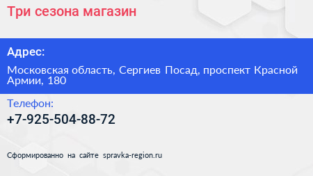 Три сезона, магазин по адресу Московская область, Сергиев Посад, проспект Красной Армии, 180 в дальнейшем Организация, размещена в следующих категориях: