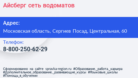 Айсберг, сеть водоматов по адресу Московская область, Сергиев Посад, Центральная, 60 в дальнейшем Организация, размещена в следующих категориях: