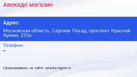 Авокадо, магазин по адресу Московская область, Сергиев Посад, проспект Красной Армии, 215а в дальнейшем Организация, размещена в следующих категориях: