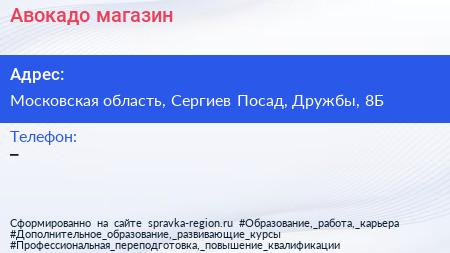 Авокадо, магазин по адресу Московская область, Сергиев Посад, Дружбы, 8Б в дальнейшем Организация, размещена в следующих категориях: