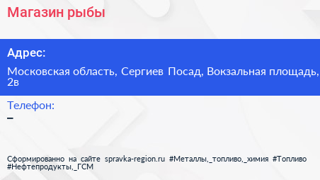 Магазин рыбы по адресу Московская область, Сергиев Посад, Вокзальная площадь, 2в в дальнейшем Организация, размещена в следующих категориях: