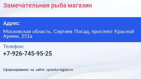 Замечательная рыба, магазин по адресу Московская область, Сергиев Посад, проспект Красной Армии, 251а в дальнейшем Организация, размещена в следующих категориях: