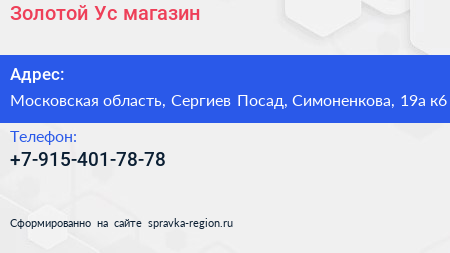 Золотой Ус, магазин по адресу Московская область, Сергиев Посад, Симоненкова, 19а к6 в дальнейшем Организация, размещена в следующих категориях: