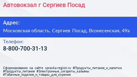 Автовокзал, г. Сергиев Посад по адресу Московская область, Сергиев Посад, Вознесенская, 49а в дальнейшем Организация, размещена в следующих категориях: