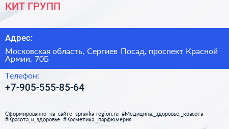 КИТ ГРУПП по адресу Московская область, Сергиев Посад, проспект Красной Армии, 70Б в дальнейшем Организация, размещена в следующих категориях:
