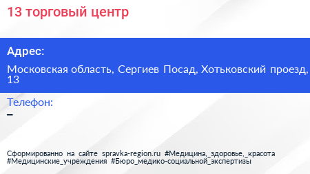 13, торговый центр по адресу Московская область, Сергиев Посад, Хотьковский проезд, 13 в дальнейшем Организация, размещена в следующих категориях: