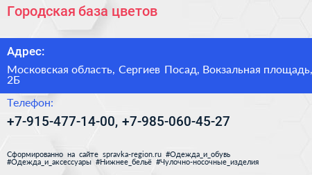 Городская база цветов по адресу Московская область, Сергиев Посад, Вокзальная площадь, 2Б в дальнейшем Организация, размещена в следующих категориях: