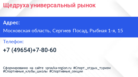 Щедруха, универсальный рынок по адресу Московская область, Сергиев Посад, Рыбная 1-я, 15 в дальнейшем Организация, размещена в следующих категориях: