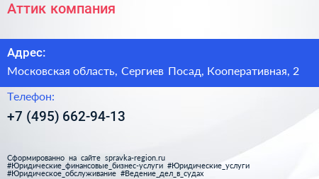 Аттик, компания по адресу Московская область, Сергиев Посад, Кооперативная, 2 в дальнейшем Организация, размещена в следующих категориях: