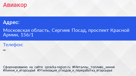 Авиакор по адресу Московская область, Сергиев Посад, проспект Красной Армии, 156/1 в дальнейшем Организация, размещена в следующих категориях: