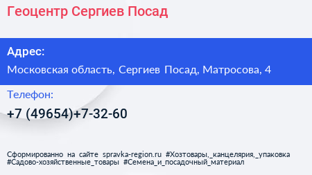 Геоцентр-Сергиев Посад по адресу Московская область, Сергиев Посад, Матросова, 4 в дальнейшем Организация, размещена в следующих категориях: