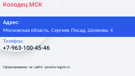 Колодец МСК по адресу Московская область, Сергиев Посад, Шлякова, 4 в дальнейшем Организация, размещена в следующих категориях: