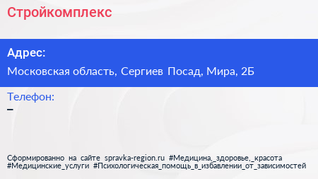 Стройкомплекс по адресу Московская область, Сергиев Посад, Мира, 2Б в дальнейшем Организация, размещена в следующих категориях: