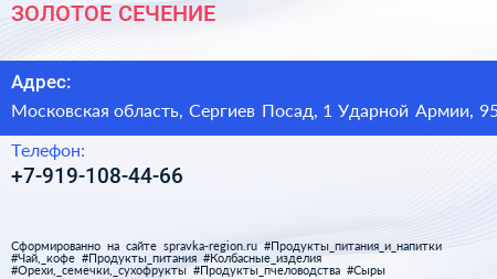 ЗОЛОТОЕ СЕЧЕНИЕ по адресу Московская область, Сергиев Посад, 1 Ударной Армии, 95 в дальнейшем Организация, размещена в следующих категориях: