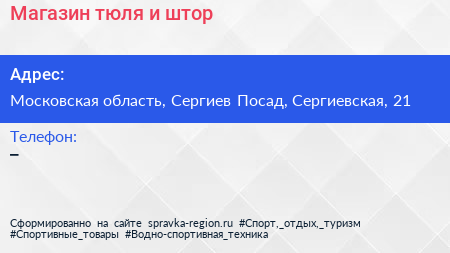 Магазин тюля и штор по адресу Московская область, Сергиев Посад, Сергиевская, 21 в дальнейшем Организация, размещена в следующих категориях: