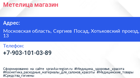 Метелица, магазин по адресу Московская область, Сергиев Посад, Хотьковский проезд, 13 в дальнейшем Организация, размещена в следующих категориях: