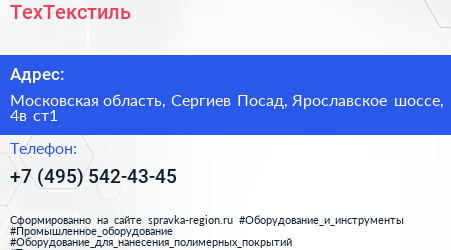 ТехТекстиль по адресу Московская область, Сергиев Посад, Ярославское шоссе, 4в ст1 в дальнейшем Организация, размещена в следующих категориях: