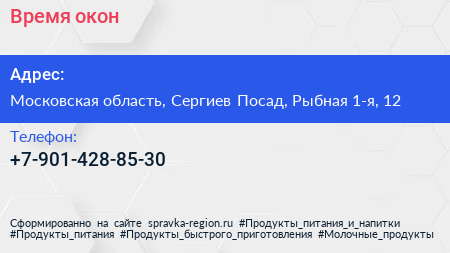 Время окон по адресу Московская область, Сергиев Посад, Рыбная 1-я, 12 в дальнейшем Организация, размещена в следующих категориях: