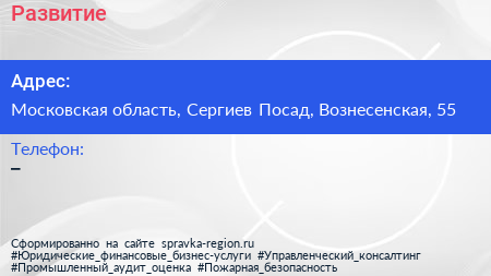 Развитие по адресу Московская область, Сергиев Посад, Вознесенская, 55 в дальнейшем Организация, размещена в следующих категориях: