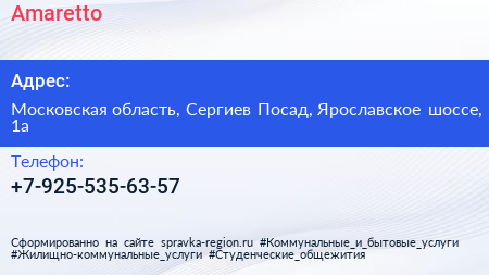 Amaretto по адресу Московская область, Сергиев Посад, Ярославское шоссе, 1а в дальнейшем Организация, размещена в следующих категориях: