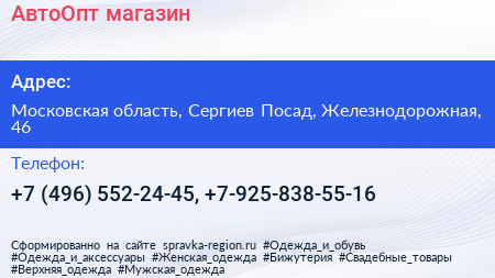 АвтоОпт, магазин по адресу Московская область, Сергиев Посад, Железнодорожная, 46 в дальнейшем Организация, размещена в следующих категориях: