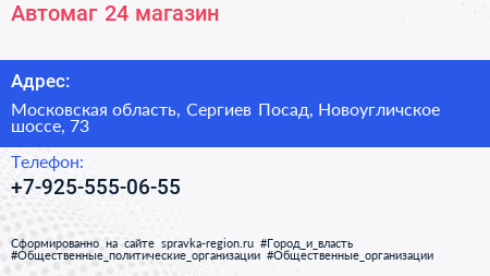 Автомаг-24, магазин по адресу Московская область, Сергиев Посад, Новоугличское шоссе, 73 в дальнейшем Организация, размещена в следующих категориях: