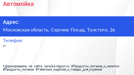 Автомойка по адресу Московская область, Сергиев Посад, Толстого, 2в в дальнейшем Организация, размещена в следующих категориях: