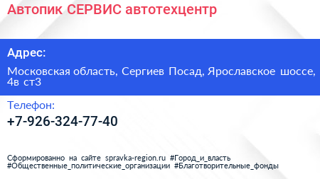 Автопик-СЕРВИС, автотехцентр по адресу Московская область, Сергиев Посад, Ярославское шоссе, 4в ст3 в дальнейшем Организация, размещена в следующих категориях: