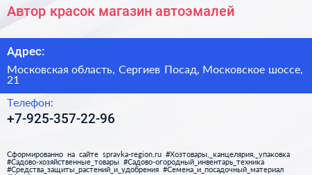 Автор красок, магазин автоэмалей по адресу Московская область, Сергиев Посад, Московское шоссе, 21 в дальнейшем Организация, размещена в следующих категориях: