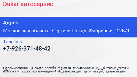 Dakar, автосервис по адресу Московская область, Сергиев Посад, Фабричная, 12Б/1 в дальнейшем Организация, размещена в следующих категориях: