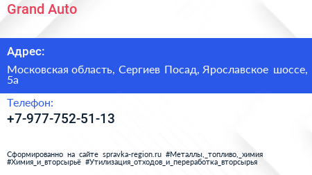 Grand Auto по адресу Московская область, Сергиев Посад, Ярославское шоссе, 5а в дальнейшем Организация, размещена в следующих категориях: