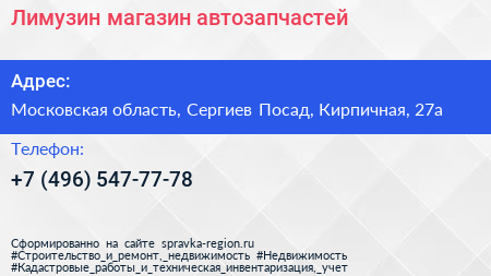 Лимузин, магазин автозапчастей по адресу Московская область, Сергиев Посад, Кирпичная, 27а в дальнейшем Организация, размещена в следующих категориях: