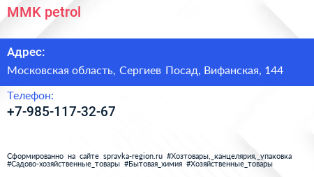 MMK petrol по адресу Московская область, Сергиев Посад, Вифанская, 144 в дальнейшем Организация, размещена в следующих категориях: